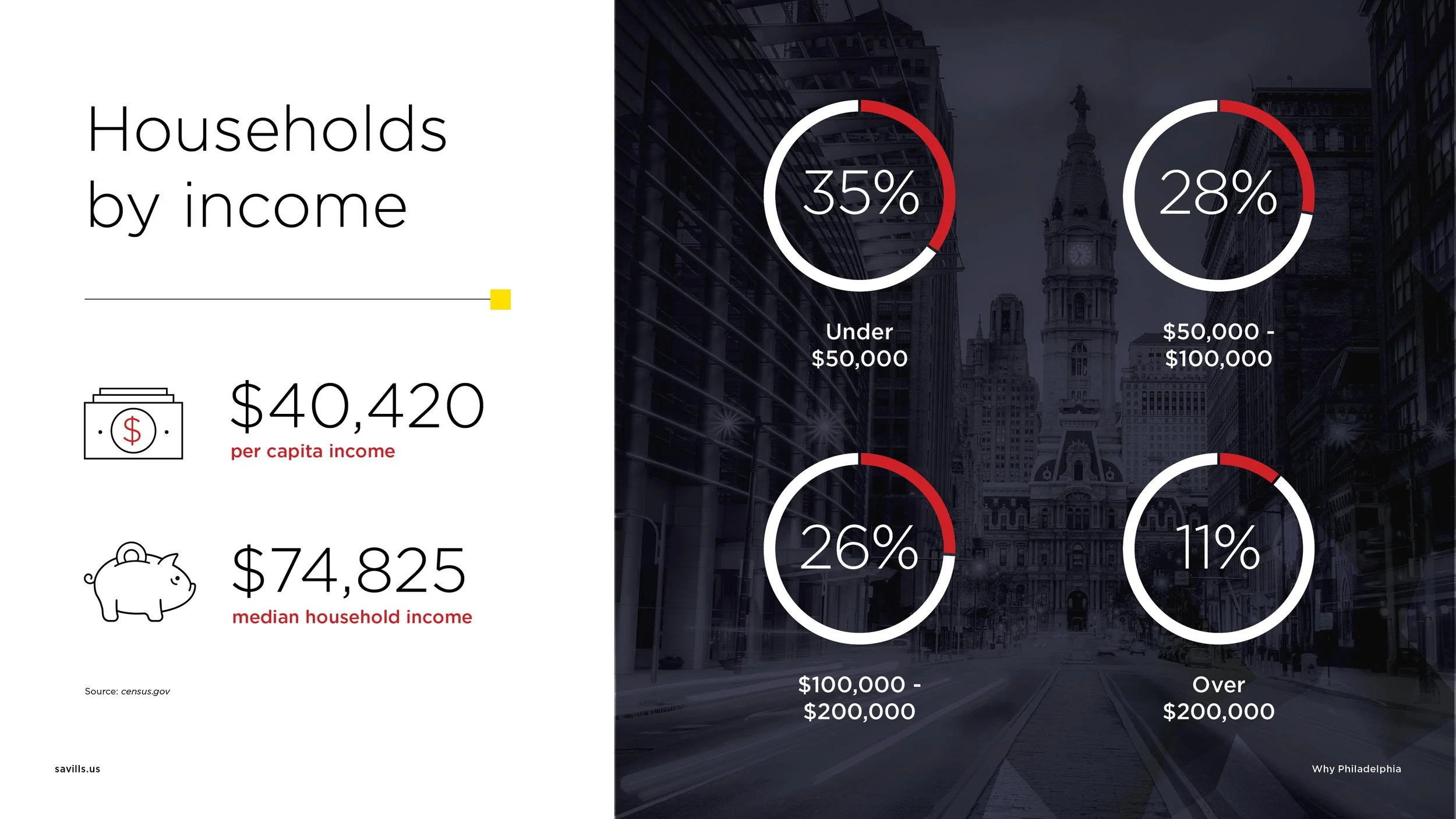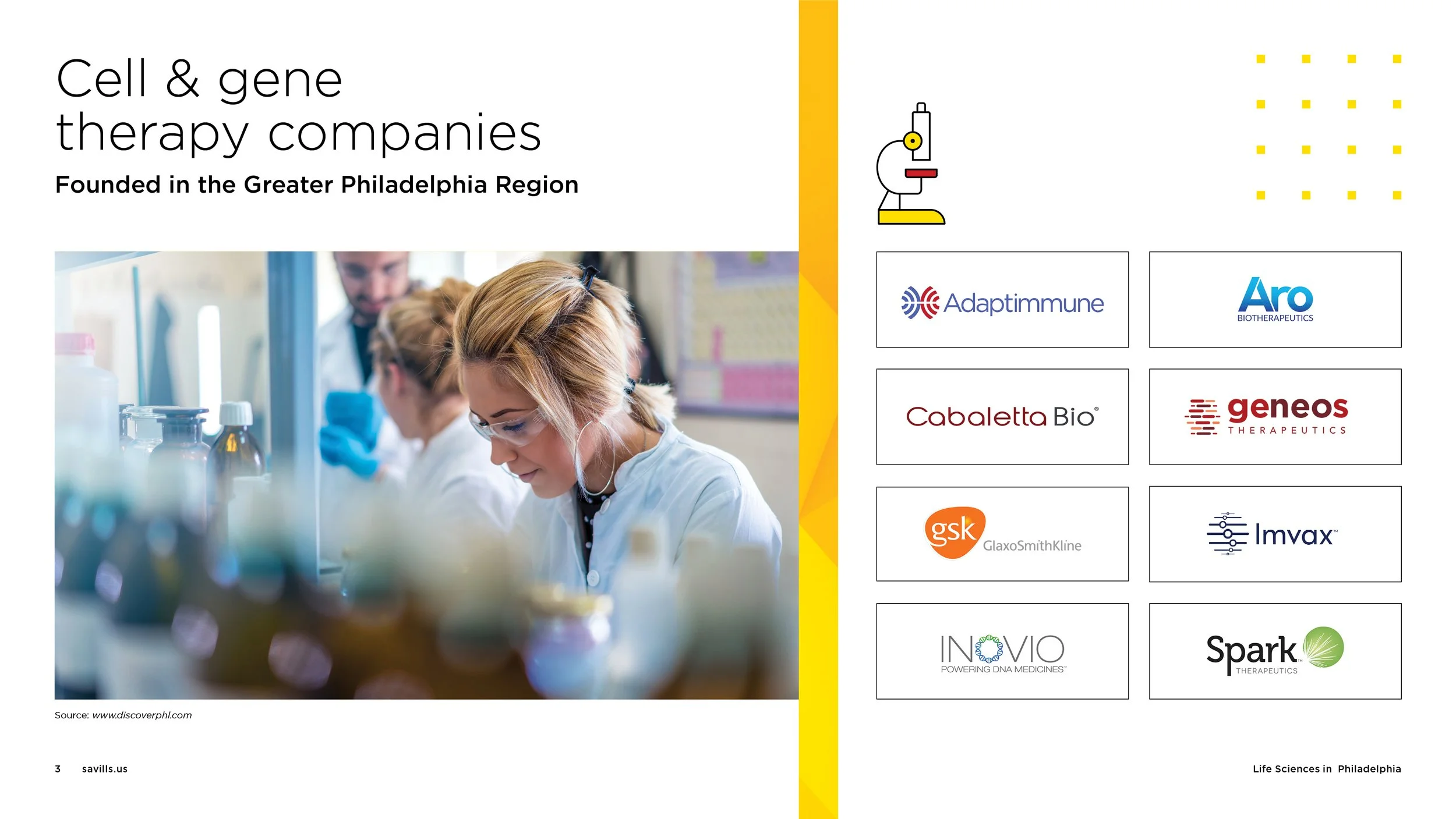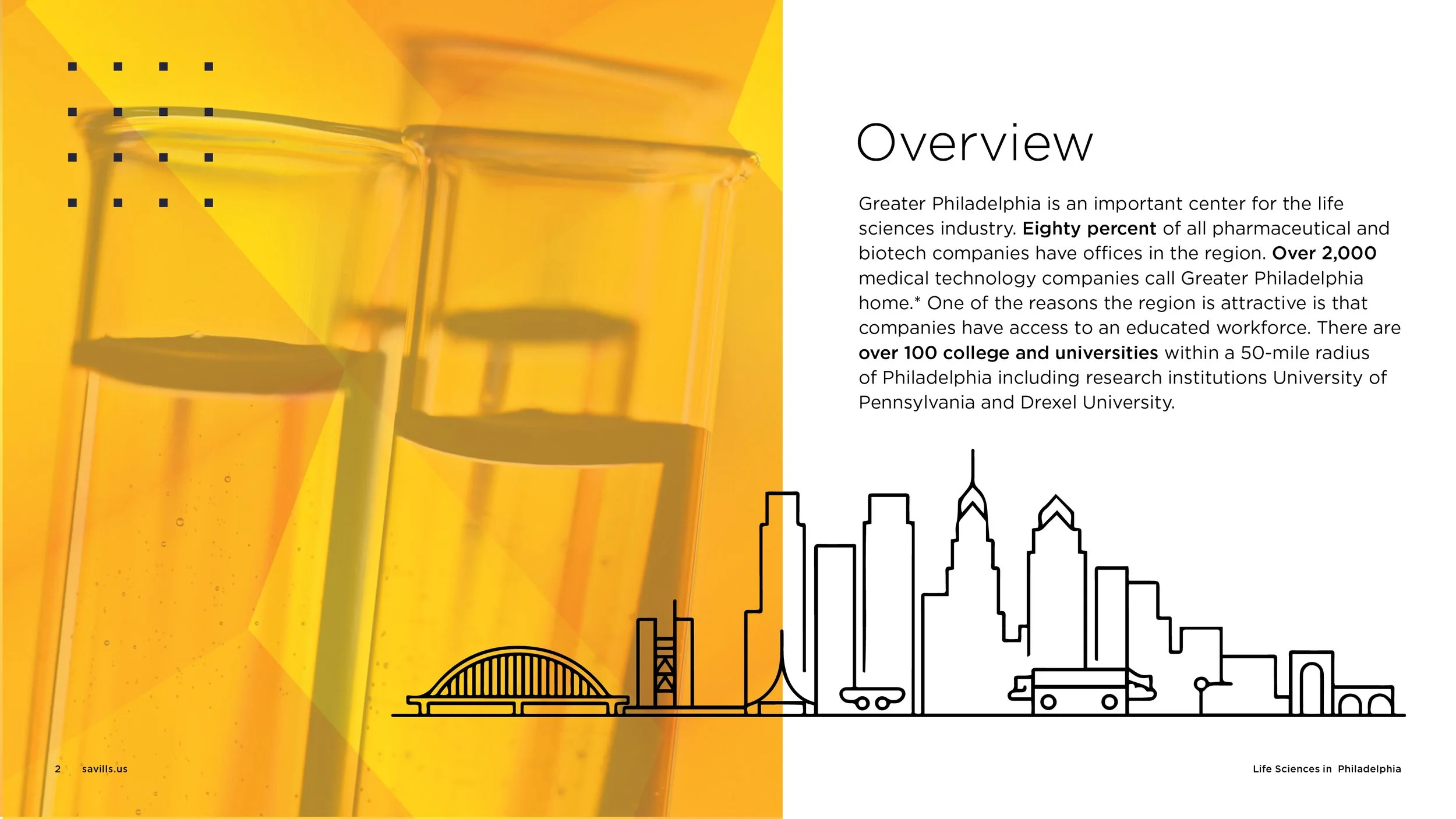 These two presentations were created within the Savills brand to highlight the advantages of real estate opportunities in the Philadelphia market. About Philadelphia explores key city demographics and what makes the city a unique and dynamic place to live and work. Life Sciences in Philadelphia was designed to showcase why the city is a strong hub for the life sciences sector, highlighting the many benefits it offers to companies and professionals in the industry.
